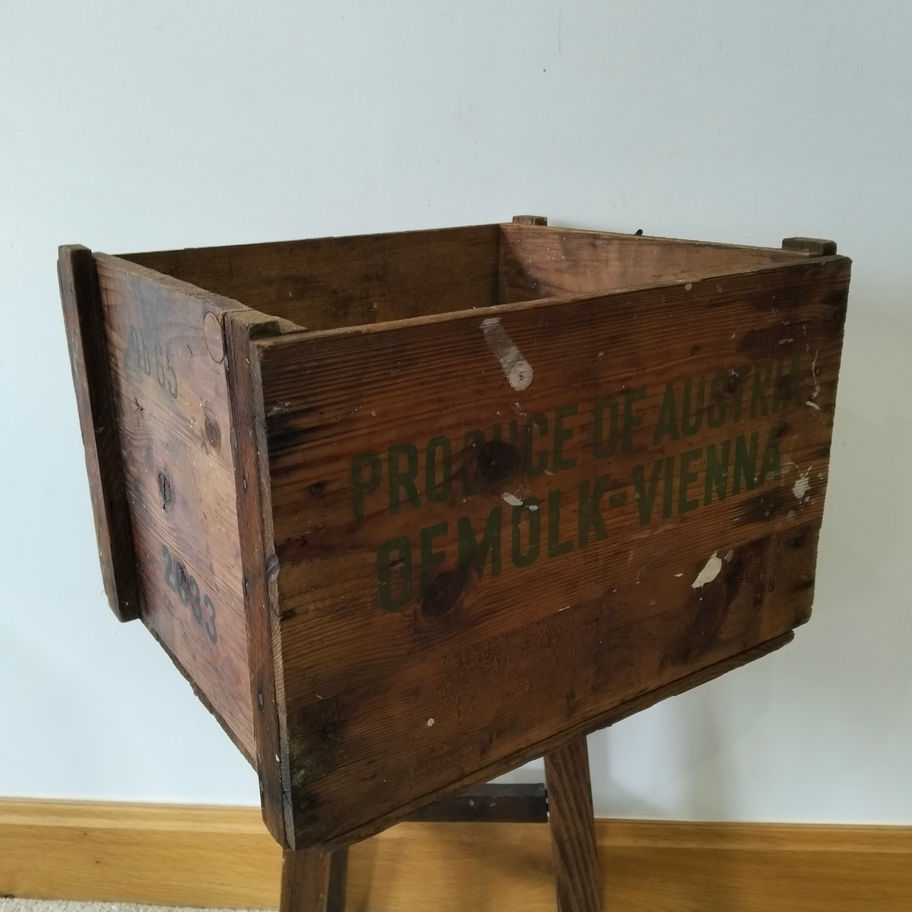 vintage Austrian dairy produce crate, , with lovely warehouse-and-farmhouse character.