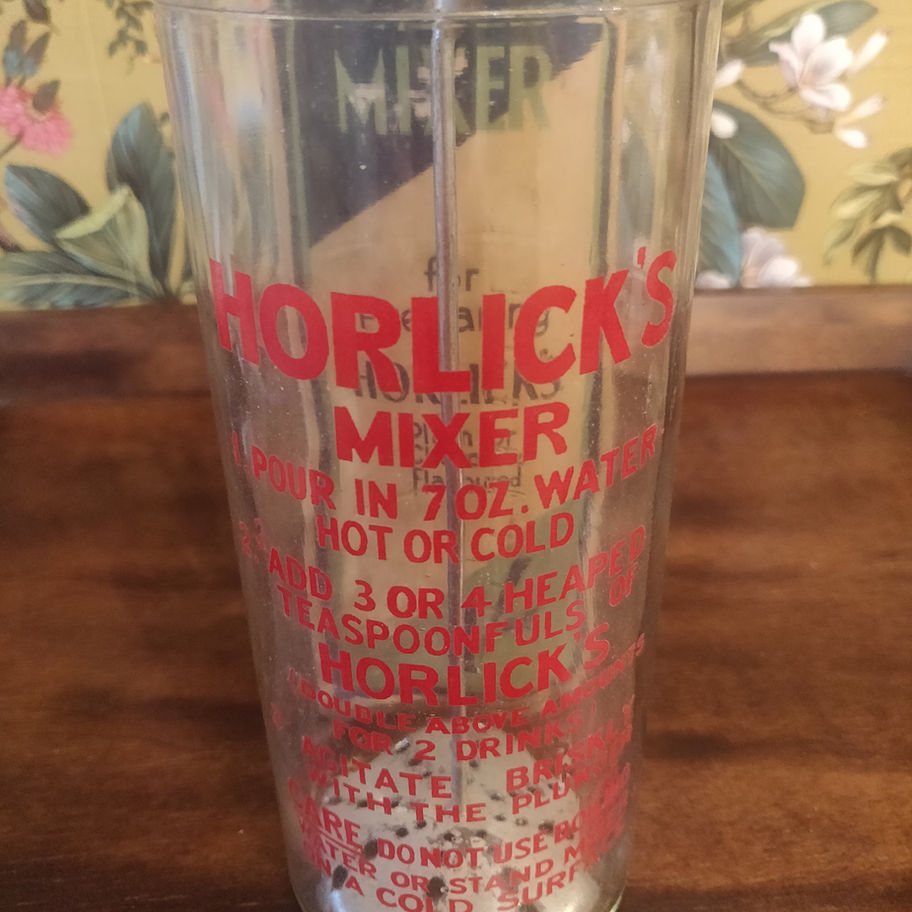 Horlicks mixers were originally used to mix powdered Horlicks into a hot drink. The mixers were often made of glass and came with a plunger.